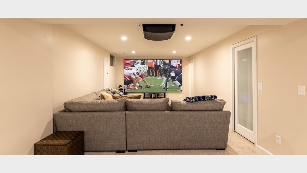 This family decided to convert their simple partially finished basement to a place that they can call gaming and hang out space for kids, yet nice enough to entertain larger group and adult friends as well.
