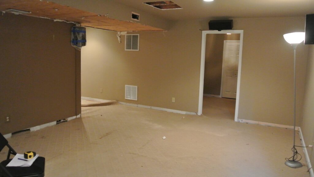 Our design staff laid out few options for the couple and they all agreed to open up a big partition of unfinished area and convert the dragged looking basement to a “Dave & Buster “of their own.